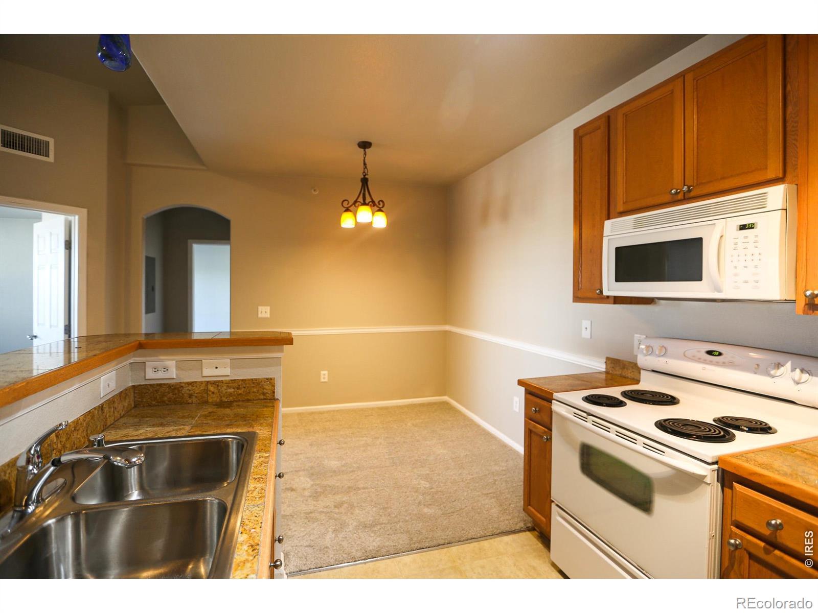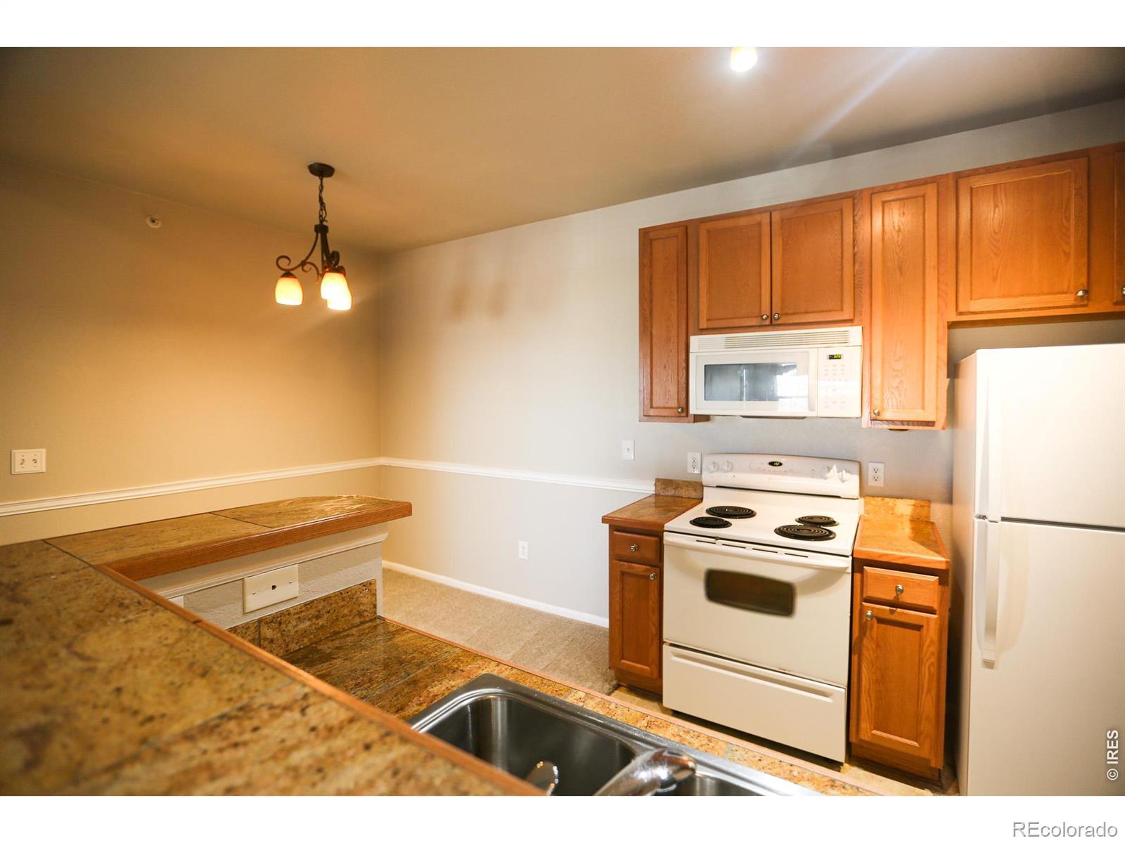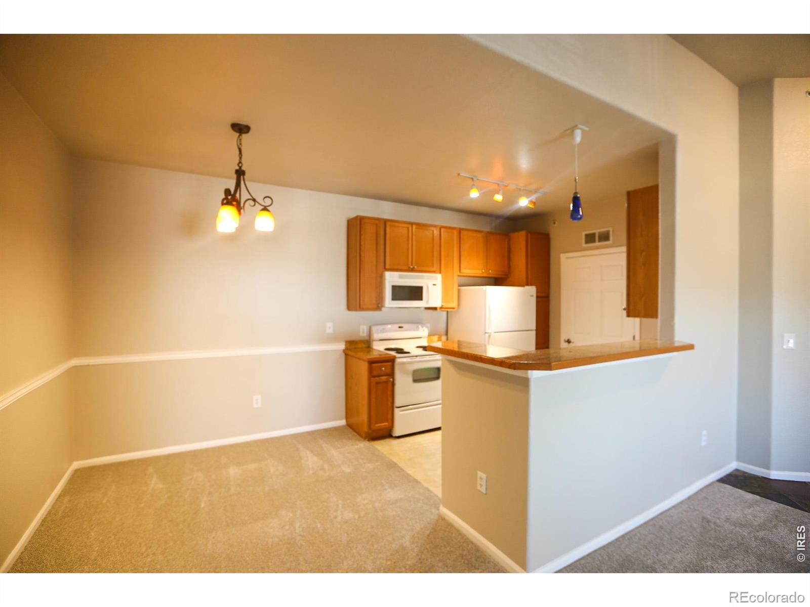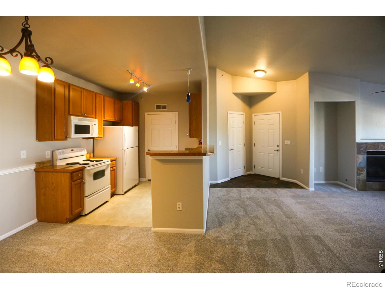 Discover this stunning, move-in ready 2BR/1BA condo in Erie's sought-after Blue Sky at Vista Ridge! This light-filled home features an open floor plan, fresh paint, and new carpet. The kitchen boasts granite countertops, while the primary suite includes a large walk-in closet. The rare bonus of two private balconies perfect for morning coffee and enjoying the scenery! Includes a dedicated laundry room with washer/dryer. Easy access to I-25, Broomfield, Lafayette, Louisville, Boulder and dining/shopping. Schedule your tour today!