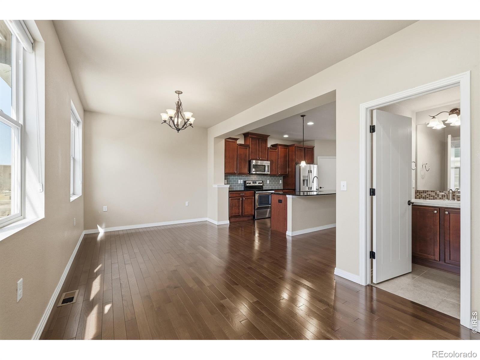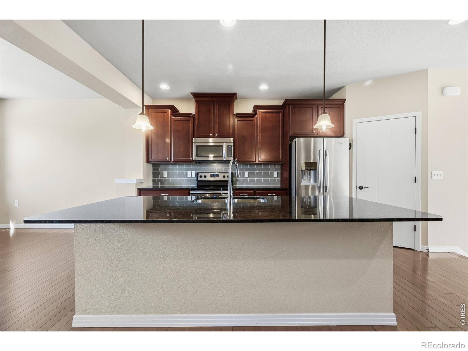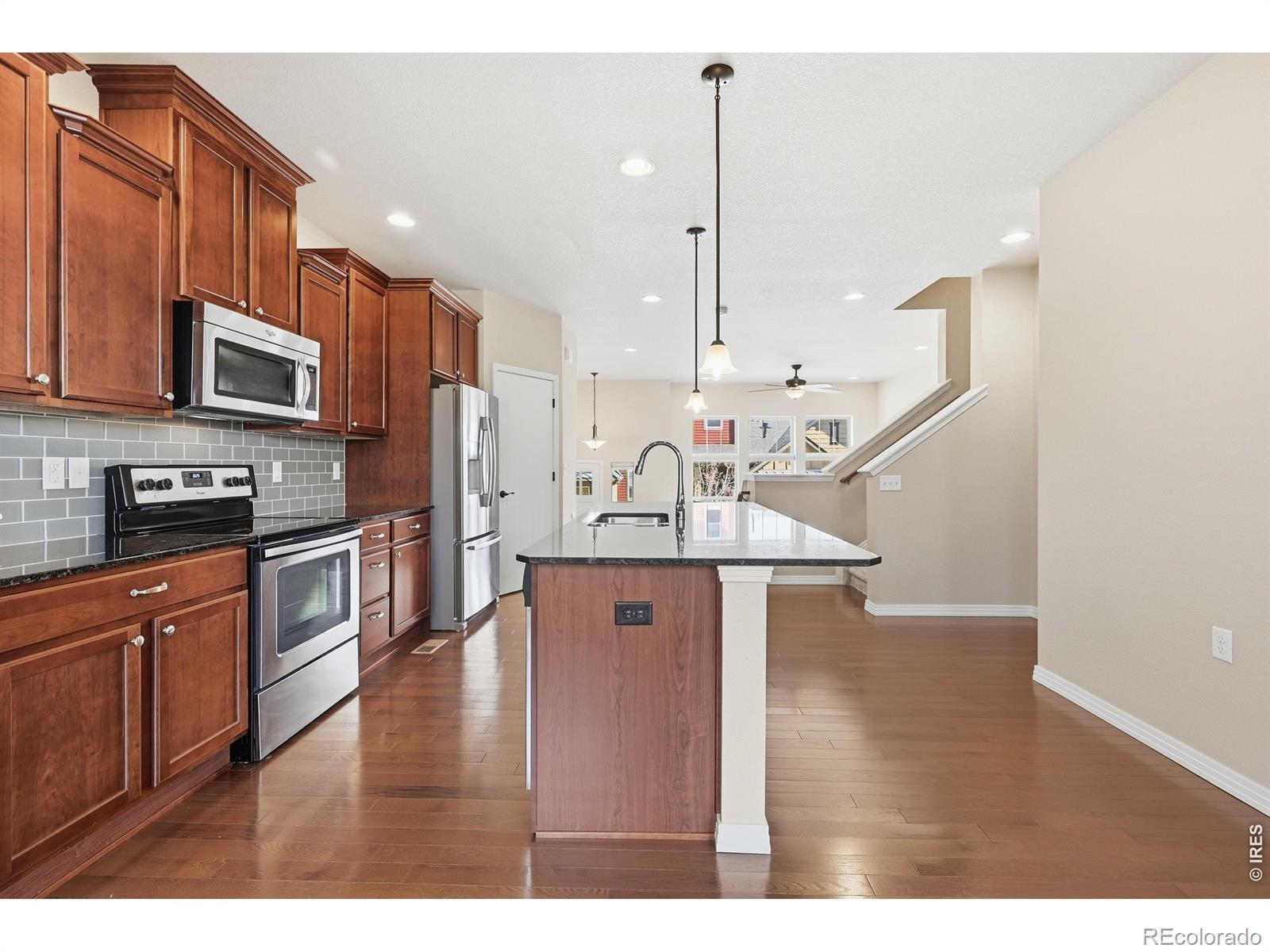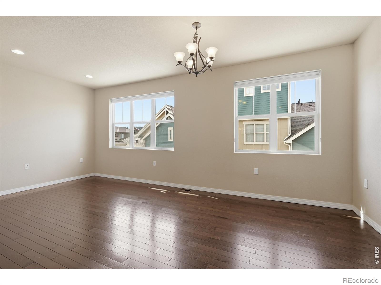 Incredible location where you can walk to everything in the heart of Erie! Located in the highly desirable Erie Commons community, this townhome is a 2 min walk to the Erie Rec Center & Library, Rusty Melon, Pho-Ever, Ziggi's Coffee, Starbucks, Aspen Ridge Preparatory School and only a 5 min walk to the Coal Creek trail open space and 5 min bike ride to Erie's single track. Gorgeous townhome with soaring ceilings, hardwood floors and an abundance of windows. Wide open floor plan where the kitchen is the center of this special home which connects both the dining & family rooms seamlessly - ideal for both everyday living or hosting parties & holiday events. The beautiful kitchen boasts granite countertops, subway tile backsplash, SS appliances and a huge island with seating for 4. Family room overlooks the front greenspace and has a gas fireplace. Dining room is big enough for a full-sized dining table and bonus sitting area. Upstairs is the spacious master suite with walk-in closet and en-suite 4pc bath. 2 additional bedroom share a full bath on the upper level and a small loft area perfect for an open office or tv area. All this plus there is nearly 300 SQ FT of conditioned basement storage space accessed through the oversized 2-car garage. True maintenance free living where the HOA covers all exterior maintenance, all landscaping, trash, water, sewer, hazard insurance & also a great community pool & park only 2 blocks away. New roof (2023) New exterior paint (2022), on-demand hot water heater, fresh furnace clean & cert, upper floor laundry, basement storage area, 2 car attached garage, premiere location, all appliances included - nothing to do but move in! All this plus Old Town Erie is only 1 mile away with all the shops, restaurants, stores, Coal Creek Park, Erie Ice Skating Rink and Maddie's Park. *** Showings Start Saturday, March 14th ***