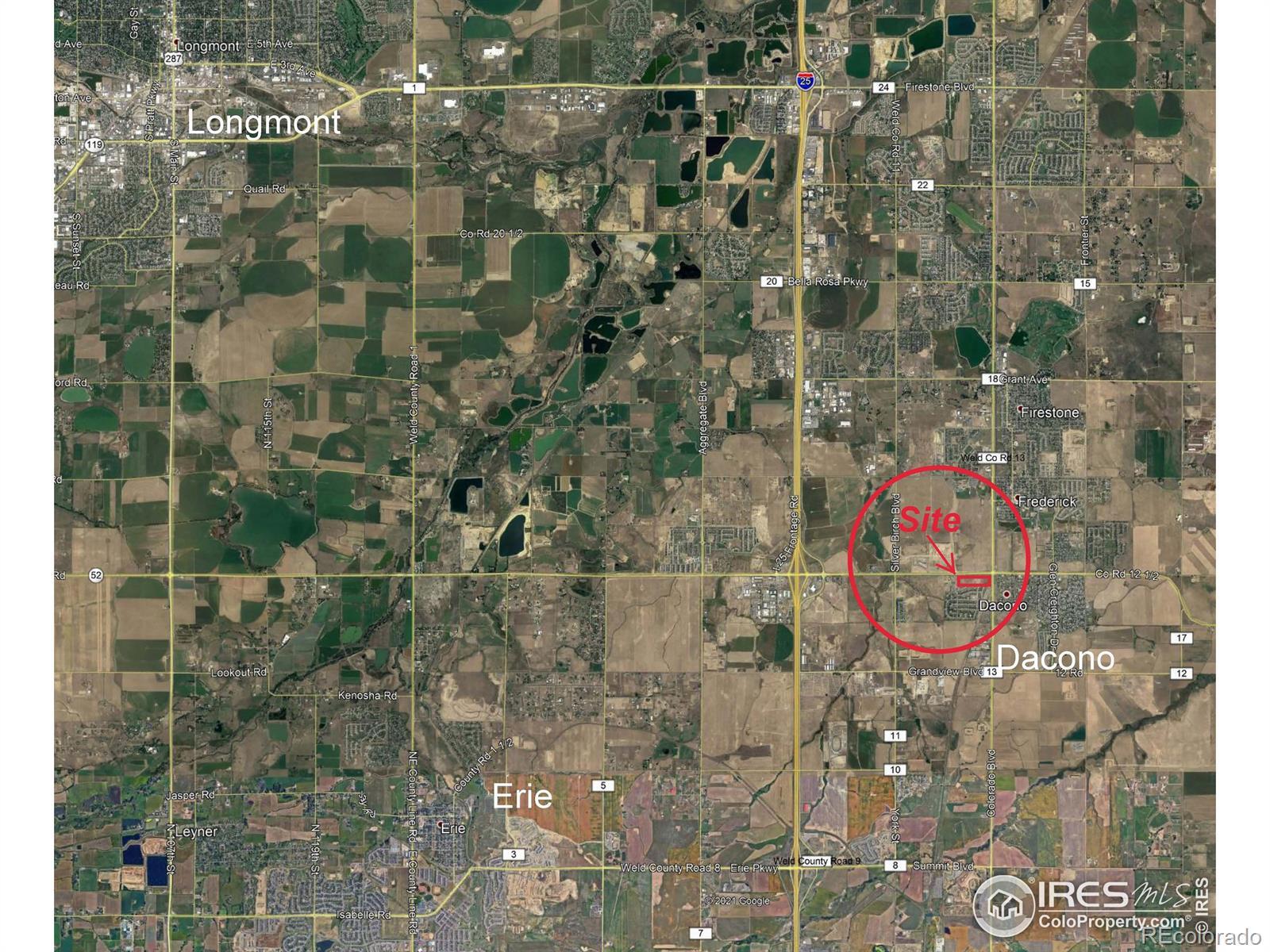 Here is a 21-acre parcel fronting Highway 52 (approx. 21,000VPD) at the nexus of the fast-growing Dacono-Frederick communities. Currently zoned C1 Commercial to the City of Dacono. Development will require PUD; many potential uses. Two lighted, full movement intersections and secondary access to Hwy 52, 10,000 new housing units recently constructed or planned. Denver-35 minutes, Boulder- 30 minutes. Several nearby commercial developments in the works.